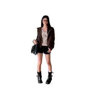 宋正恩咖色复古鹿皮绒连帽外套女秋2025新款chic别致短款夹克上衣