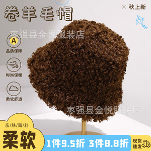 仿卷羊毛帽子韩版渔夫帽保暖百搭不挑人纯色盆帽复古渔夫帽毛绒帽