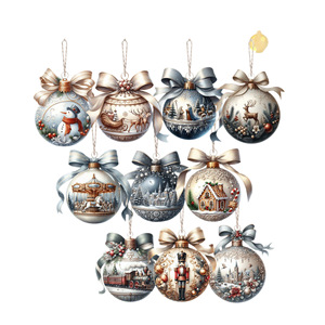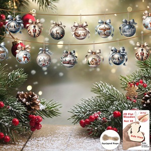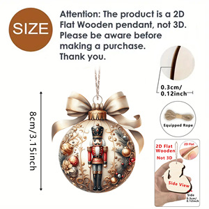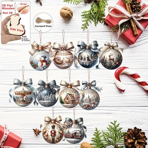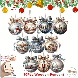 2D平面10片精美圣诞球木质挂饰,完美的圣诞派对用品,圣诞树装饰