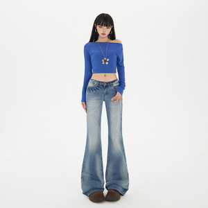 低腰微喇牛仔裤女秋季2025年新款美式辣妹修身显瘦高个子拖地裤子
