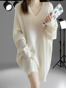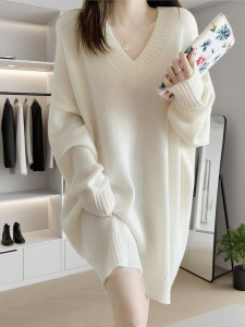 2025新款V领针织毛衣女秋冬韩系百搭宽松慵懒风长袖打底时尚上衣