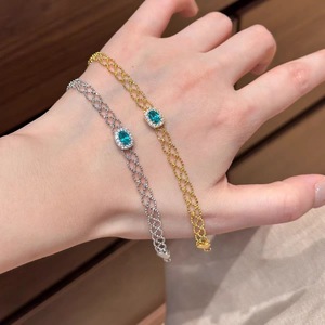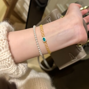 蕾丝金银手链龙虾扣镶嵌天然祖母绿小众百搭高级感精致首饰厂直销