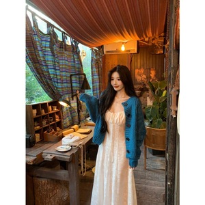 慵懒系气质穿搭一整套针织毛衣外套女内搭氛围感连衣裙