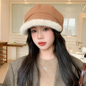 韩系冬季帽子女加厚毛绒边八角帽英伦时尚画家帽秋冬日系报童帽潮