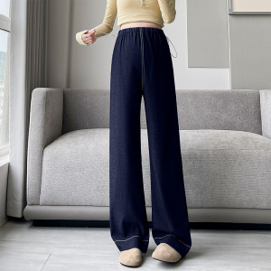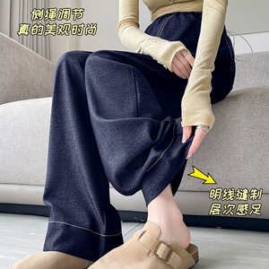 孕妇秋冬新款牛仔休闲裤韩版外穿直筒裤阔腿裤抽绳无托腹孕妇裤女