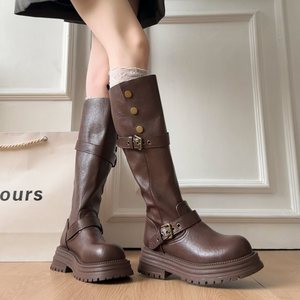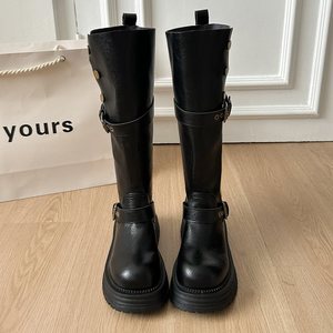 厚底显瘦皮带扣新款粗跟骑士靴复古高筒长筒靴女长靴英伦2025秋冬