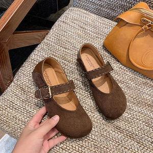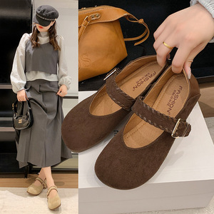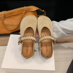 玛丽珍配裙子晚晚风包头单鞋法式懒人一脚蹬一字式扣时尚百搭单鞋
