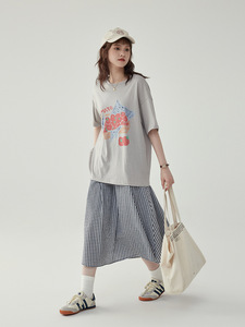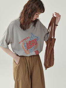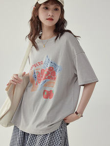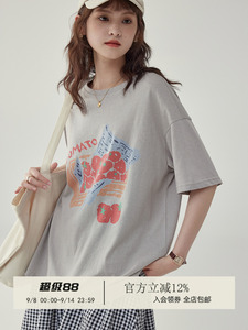 「北岛AMUU」日系慵懒风番茄印花短袖t恤女夏季新款宽松圆领上衣