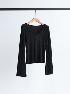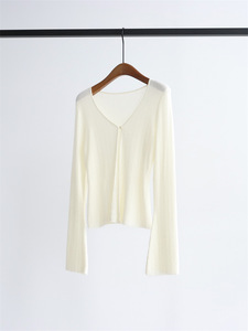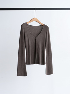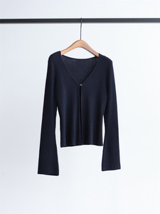 早秋简约一粒扣针织小开衫羊毛混纺V领长袖外搭通勤气质上衣女装