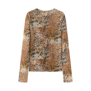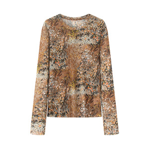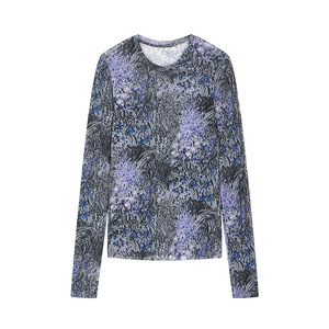 2025秋季新款时尚百搭弹力修身网纱印花长袖T恤圆领打底衫女