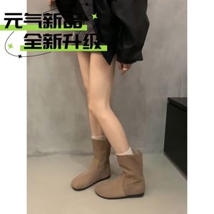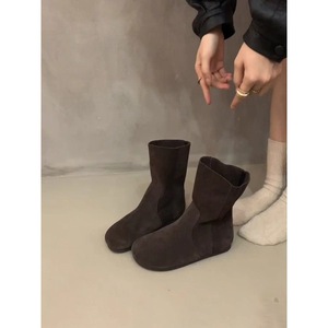 2025秋冬平底复古勃肯短靴女内增高圆头马丁靴显瘦堆堆西部牛仔靴