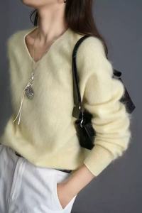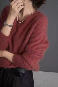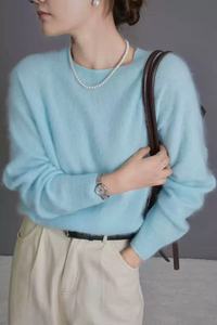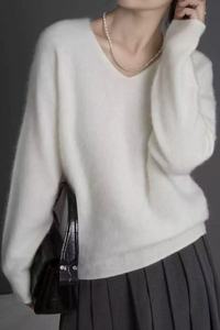 秋冬新款云朵拥抱 羊绒柔软拉毛毛衣 羊毛衫无缝一体针织衫女慵懒