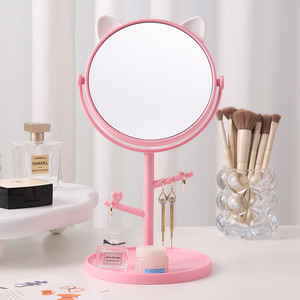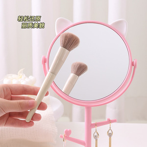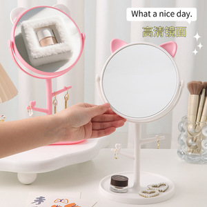 镜子可爱猫耳桌面台式带托盘高清化妆镜学生宿舍化妆镜放桌子上