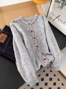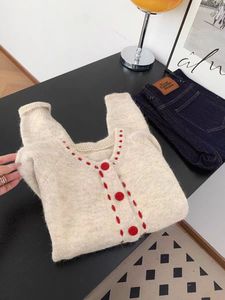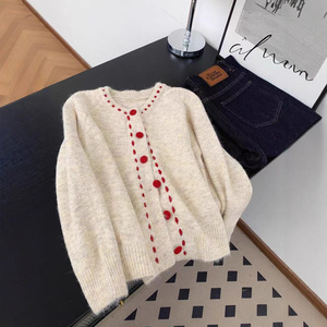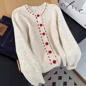 广州十三行高货爆款~慵懒温柔风撞色圆领毛衣女秋冬针织开衫上衣