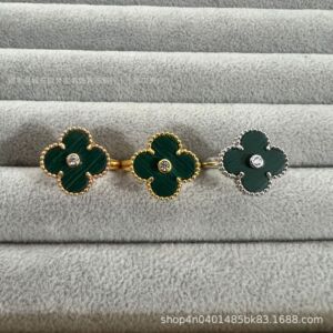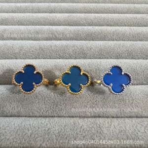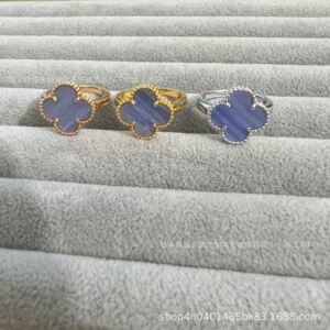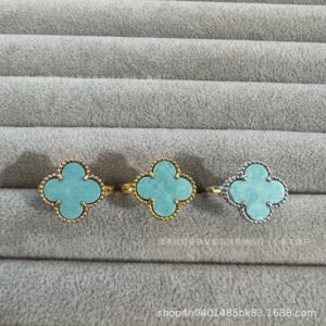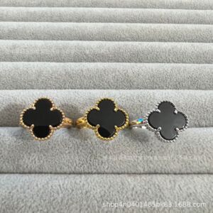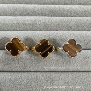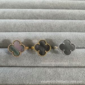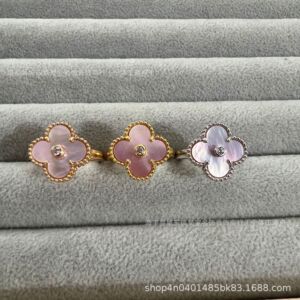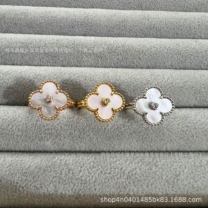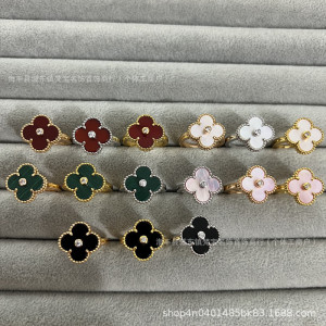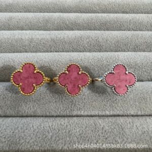 v金高版本四叶草戒指高级时尚百搭18K玫瑰金天然白贝母红玛瑙戒指