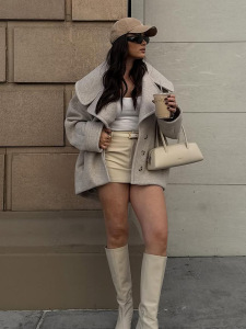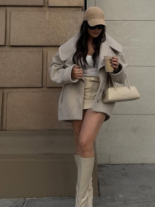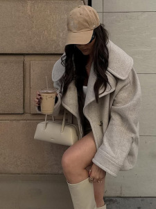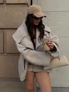 美式复古纯色气质翻领长袖毛呢外套女2025跨境欧美风秋冬新款批发