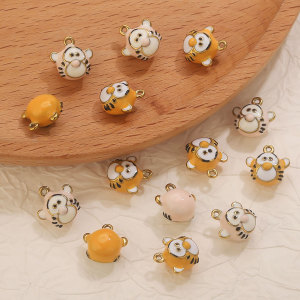 可爱卡通立体老虎滴油吊坠 不锈钢DIY 手工饰品配件 童趣风挂件