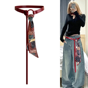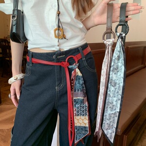 美式辣妹~红色丝巾腰带配饰女复古嘻哈朋克甜酷装饰腰链配牛仔裤