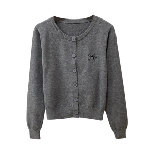 开衫薄款早秋新款刺绣短款针织衫针织毛衣外套长袖上衣黑色均码