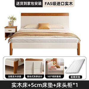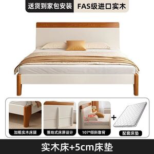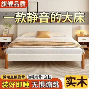 实木床现代简约1.8米家用双人床1.5m单人床出租房1.8米主卧大床