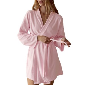 2025年秋冬新款轻奢时尚V领绑带天鹅绒短款睡袍欧美跨境家居服女