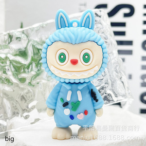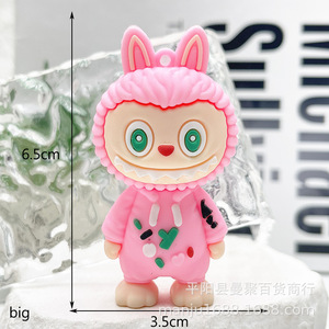 卡通拉布布钥匙扣公仔盲盒挂件跨境labubu迷你手机小挂件拉布布配