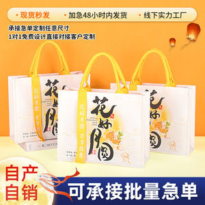 国风帆布袋手提托特包花好月圆月饼中秋节伴手礼立体袋定制logo