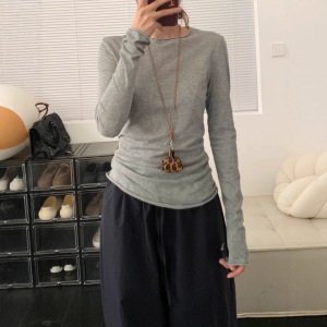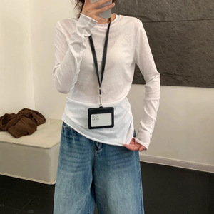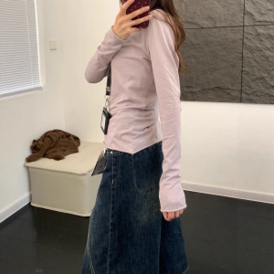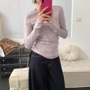 春秋季微透长袖防晒罩衫淡紫色欧若风恤女薄款卷边修身打底上衣