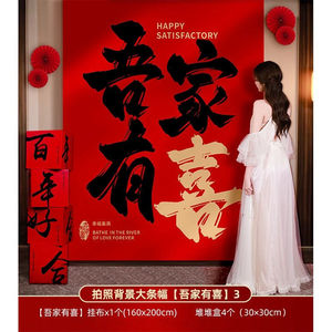 拍照背景墙挂布【吾家有喜】+好合盒4个
