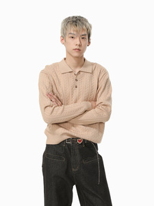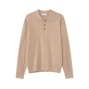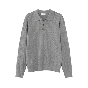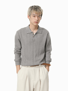 MTLCLOTHES男装|老钱风亨利领纯色绞花纹复古cleanfit套头针织衫