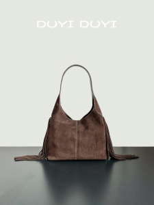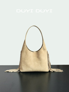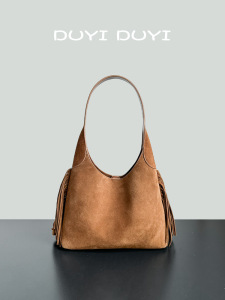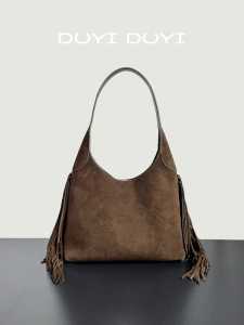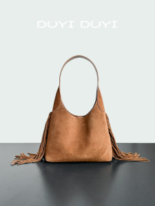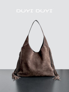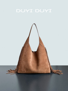 2025新款复古女包百搭磨砂麂皮单肩包波西米亚流苏腋下包包托特包