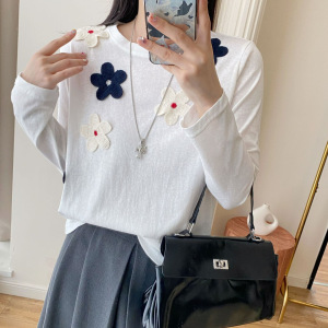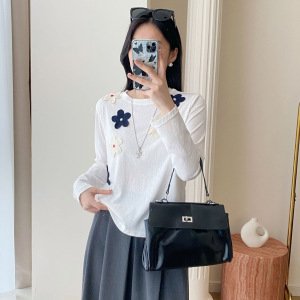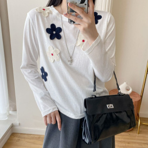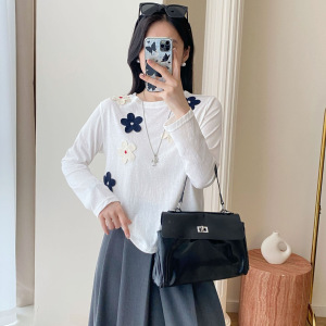 25款早秋新品纯色钩花装饰H型圆领长袖基础版型T恤 091p113