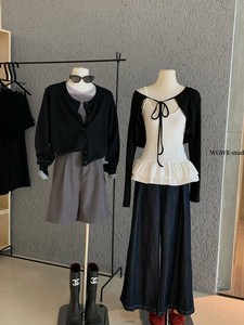 WGWE秋季韩系简约黑色防晒披肩罩衫+简约白色吊带两件套装女W7163