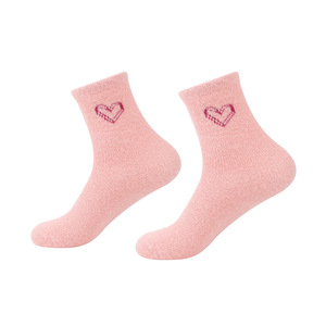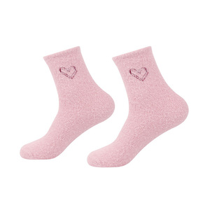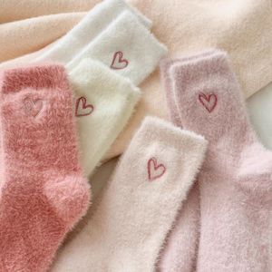 水貂绒袜子女中筒袜秋冬加厚毛绒绒爱心睡眠地板袜冬天保暖长筒袜