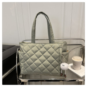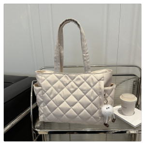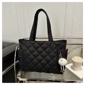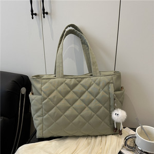 秋季休闲大容量托特包女棉服包新潮时尚菱格帆布包日常通勤单肩包