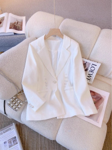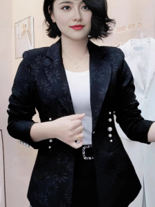 黑色西装外套女提花刺绣长袖小西服大码MM秋季轻奢小外套女A7234