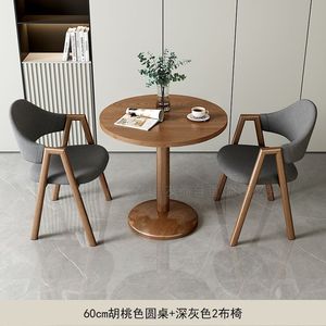 浅灰色2布椅+60胡桃色圆桌♜☆