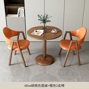 卡其色2皮椅+60胡桃色圆桌♜☆