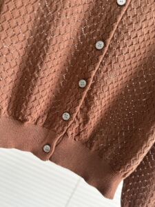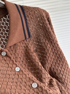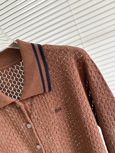 南油高品质MM25早秋新款百搭款翻领提花字母镂空针织开衫