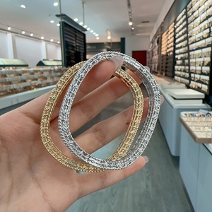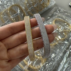 高端轻奢满钻手镯中东迪拜高版本铜镀金首饰欧美跨境排钻手镯批发