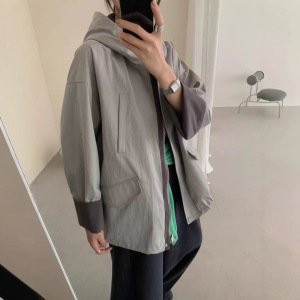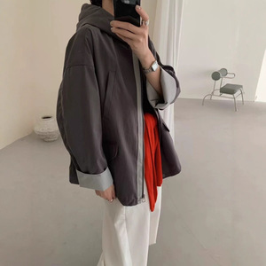可补533韩系翻边袖连帽风衣外套长68-仅供货经销商不退换