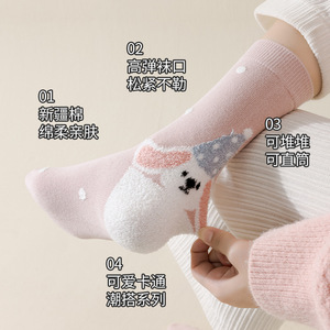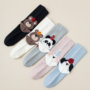25年秋冬新款卡通动物袜子女可爱日系小熊堆堆袜纯棉无骨中筒袜子