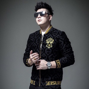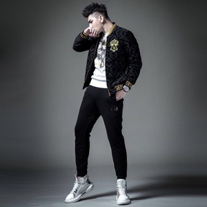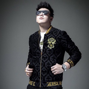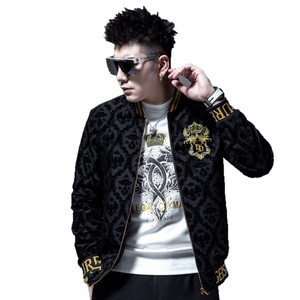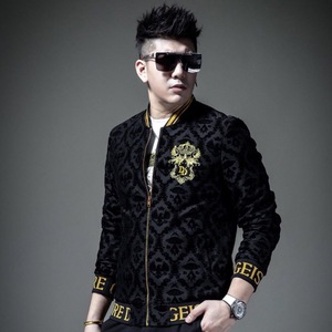2025秋季新款暗纹提花男士夹克徽章刺绣棒球服领上衣韩版外套男潮
