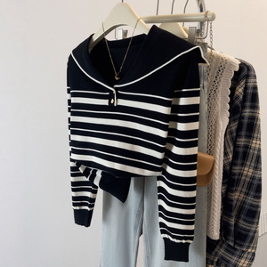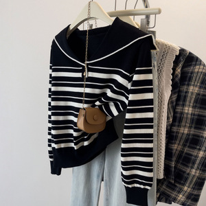 黑白条纹针织衫2025秋冬新款海军领内搭毛衣打底衫上衣设计感小众