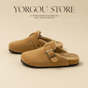 远港外穿软木勃肯拖鞋女秋冬季加绒居家防滑一脚蹬棉拖鞋男办公室