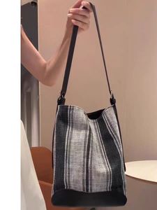 复古条纹托特包2025新款慵懒风高级感大容量水桶包通勤百搭斜挎包