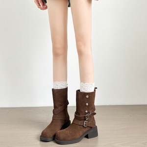 软皮版~美拉德翻折两穿堆堆靴女2025新款增高马丁靴皮带扣短靴子