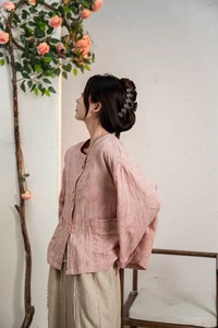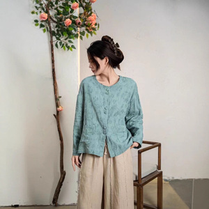 2025秋季新款复古花卉暗纹提花单排扣宽松休闲V领内搭长袖外套女