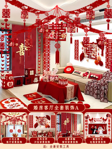 客厅拉花结婚装饰用品新房婚房布置套装女方婚礼男方房间喜字大全
