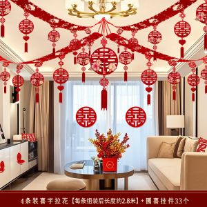 (2.8米)立体圆喜吊顶【4条】+圆喜灯笼1个